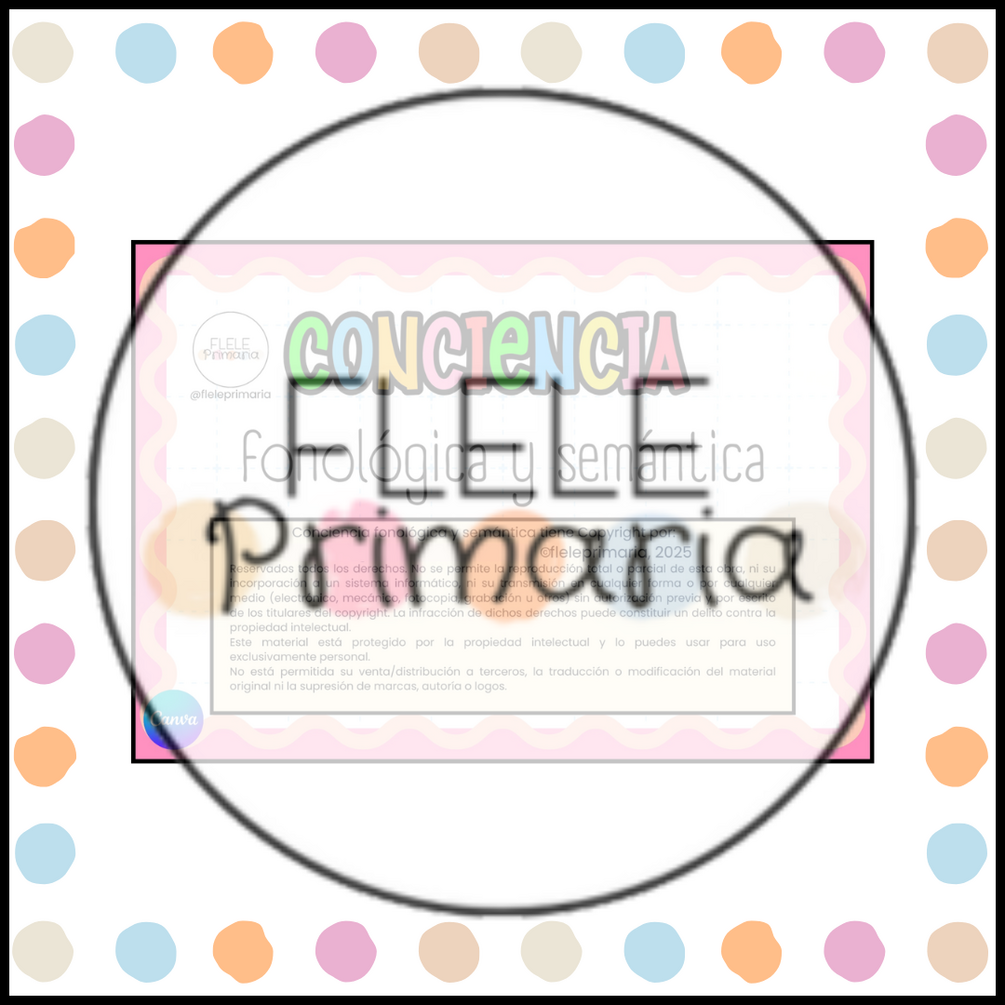 Cuaderno para trabajar la conciencia fonológica, el campo semántico y el aprendizaje de léxico. Este cuaderno está diseñado para reforzar la lectoescritura, especialmente en los primeros cursos de Primaria y con alumnado de incorporación tardía o con desconocimiento del idioma. 🔤 Incluye trabajo específico de conciencia fonológica: ✔️ Fichas con sílabas trabadas ✔️ Presentación e identificación de vocabulario ✔️ Frases cortas para el conteo de palabras ✔️ Textos de lectura breves relacionados con cada sonido ✔️ Expresión escrita con reconocimiento de palabras 🧠 Sección de campo semántico en 8 categorías, ideal para ampliar vocabulario y comprensión lectora: 📌 Presentación de vocabulario 📌 Identificación y asociación imagen–texto 📌 Textos de lectura breves 📌 Frases para conteo de palabras 📌 Expresión escrita 📌 Fichas con pautas para trabajar dictados cortos ✨ Un recurso pensado para: ✔️ Trabajar la lectoescritura ✔️ Reforzar el aprendizaje del idioma 📎 Ideal como material de refuerzo o apoyo en el aula.