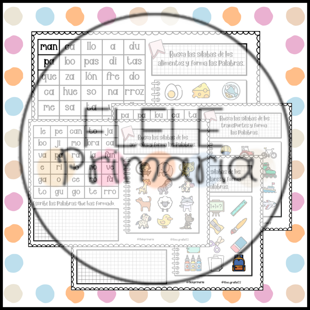 Fichas temáticas para trabajar la conciencia silábica de forma divertida y visual. Ideal para infantil, primeros cursos de primaria y aprendizaje del español💡📚 🧩 ¿En qué consiste? Los peques deberán formar palabras encontrando las sílabas que aparecen desordenadas en las tablas. 👀 Están organizadas por TEMÁTICAS: profesiones, alimentos, números, medios de transporte, material escolar, alimentos… ¡Una forma genial de ampliar vocabulario mientras trabajan la segmentación silábica! 📝 Una vez descubren la palabra, también la escriben. 👉 Perfecto para reforzar lectoescritura, conciencia fonológica y atención visual.
