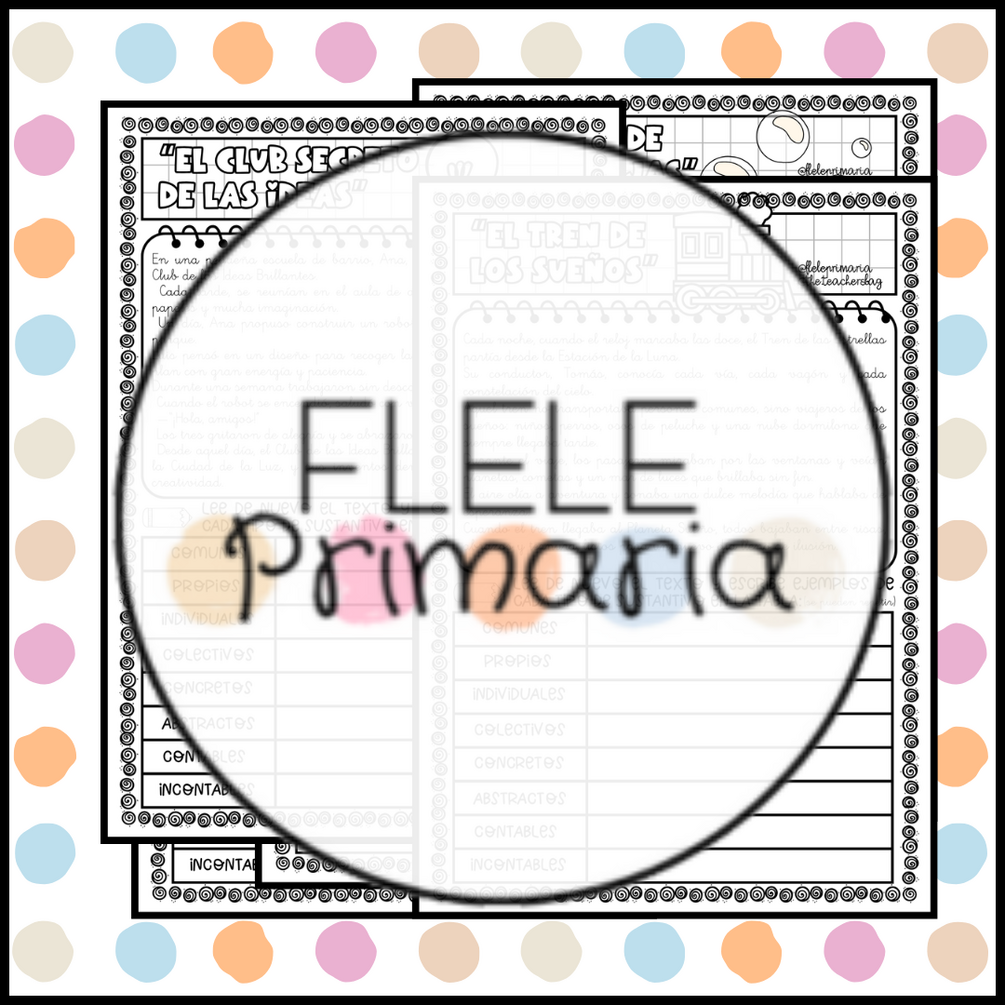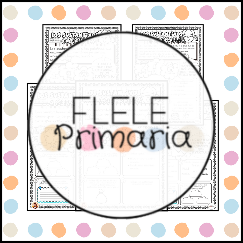 Fichas explicativas y de práctica para cada tipo de sustantivo: comunes, propios, individuales, colectivos, concretos, abstractos, contables e incontables. También encontrarás una ficha inicial para introducir el concepto de sustantivo. Lecturas con ejercicios de clasificación. Actividades divertidas como “encuentra el intruso” y mandalas para aprender de forma amena y a todo color. Es un recurso que siempre viene bien tener a mano, ideal para reforzar gramática y contenidos de Lengua, apoyar el trabajo del aula o repasar en casa de forma sencilla y motivadora. Está orientado a segundo y tercer ciclo de Educación Primaria y es perfecto para sesiones de refuerzo, estaciones de aprendizaje o rincones de Lengua.