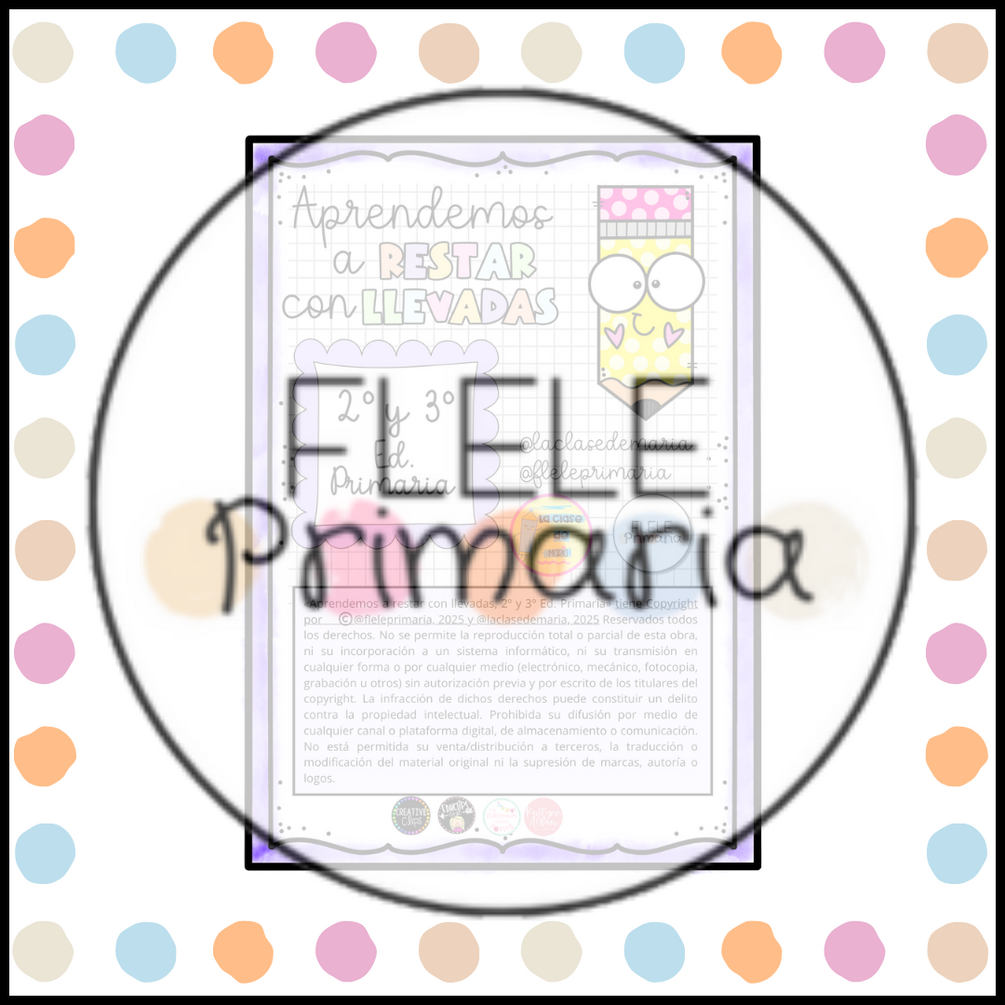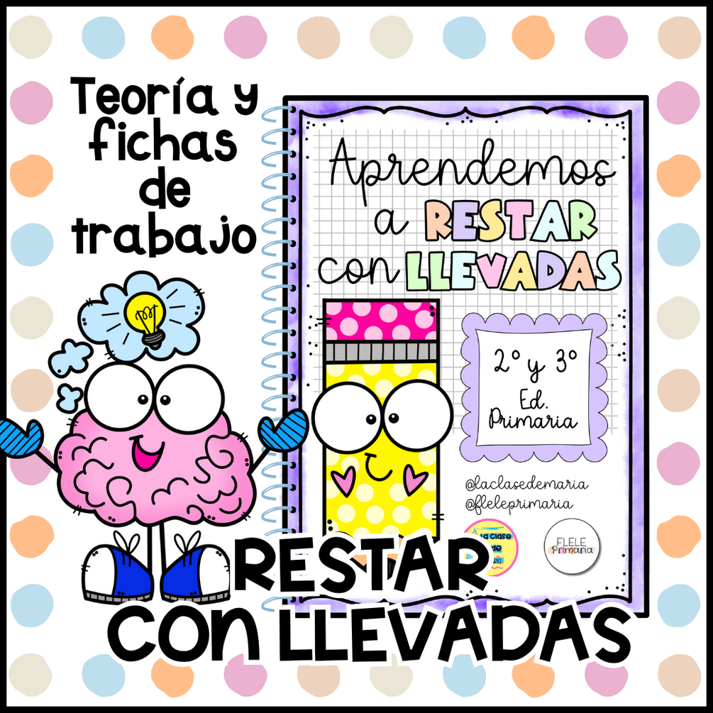 📝Fichas de teoría para entender paso a paso qué es llevar en una resta. ✏️Ejercicios de restas de 2 y 3 cifras con llevada para practicar de manera guiada. 🧠 Problemas de restas con llevadas para aplicar lo aprendido en situaciones reales. 🎲 Actividades dinámicas para aprender Matemáticas con las restas de forma amena en el aula o en casa (DETECTIVE DE LAS RESTAS, MANDALA, RUEDAS MATEMÁTICAS, CARNET DE RESTAS, RESTAS ENCADENADAS...)
